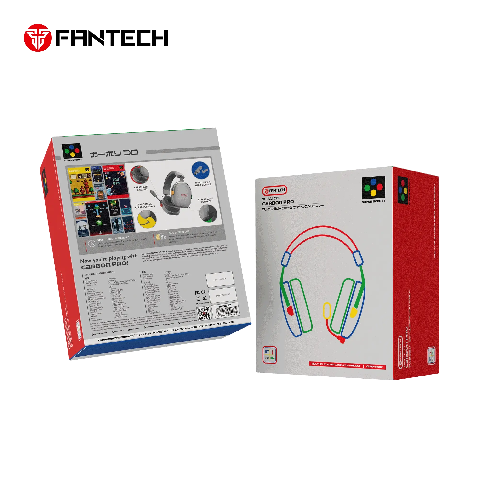 FANTECH WHG06 CARBON PRO Multi-platform Wireless Headset - Super MAXFIT 4 QUAD Mode Connection