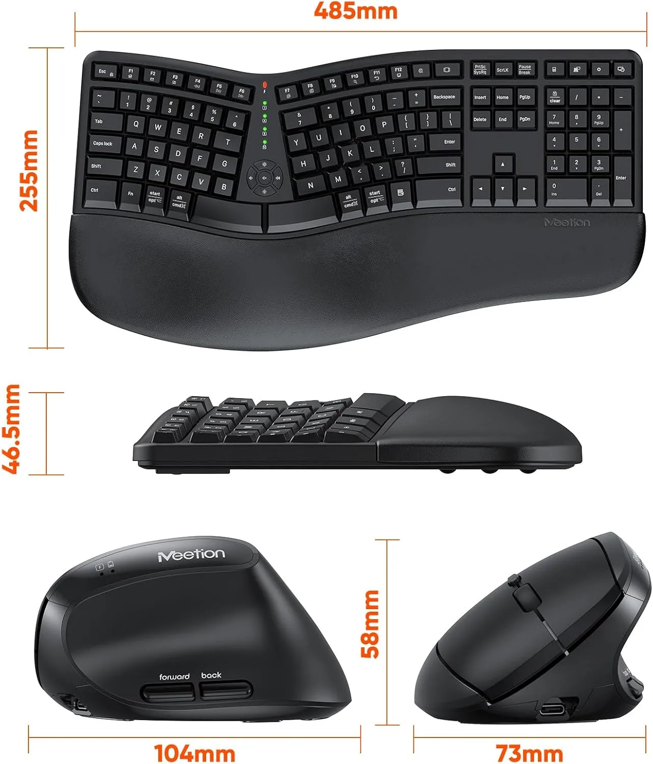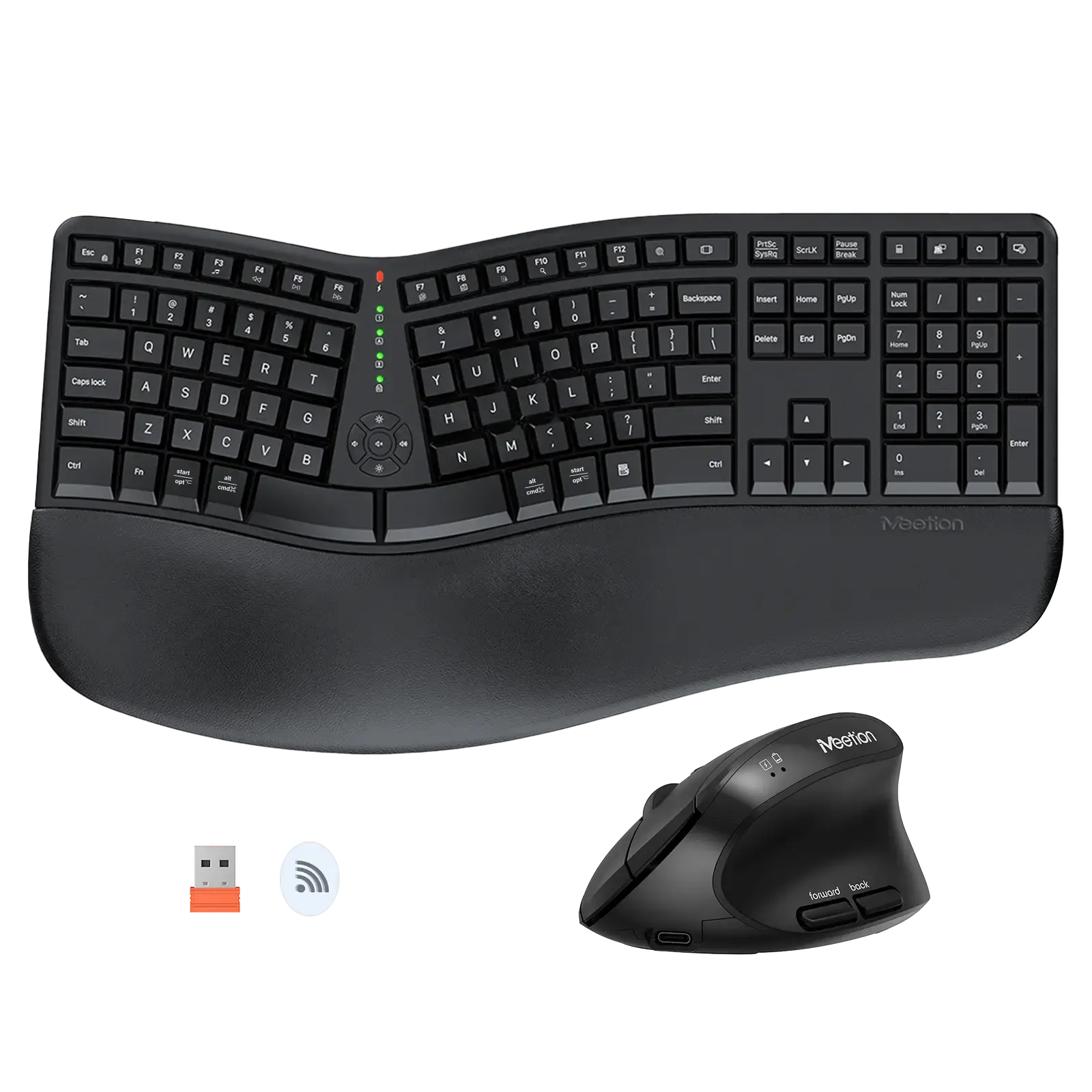 MEETION DIRECTORC WIRELESS ERGONOMIC KEYBOARD AND VERTICAL MOUSE COMBO 2.4GHZ WITH WRIST REST RECHARGEABLE