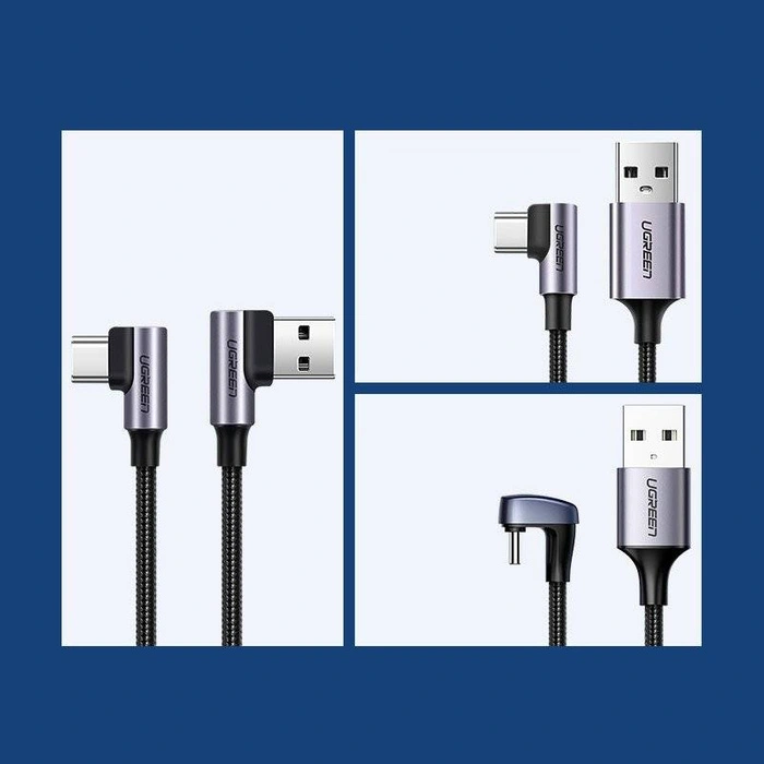 UGREEN 20857 USB-C ANGLED MALE TO USB-A ANGLED MALE 2.0 CHARGING AND DATA 3A 480 Mbps – 2M