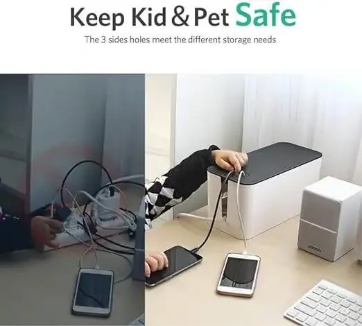 Our Cable Management Box acts as a protective shield, mitigating risks associated with sockets and potential fire hazards. It guarantees added safety, providing a layer of defense against unforeseen impacts.