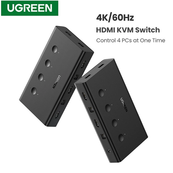 The Ugreen 70439 HDMI KVM Switch is used to control 4 computers using a single keyboard and mouse via USB 2.0.