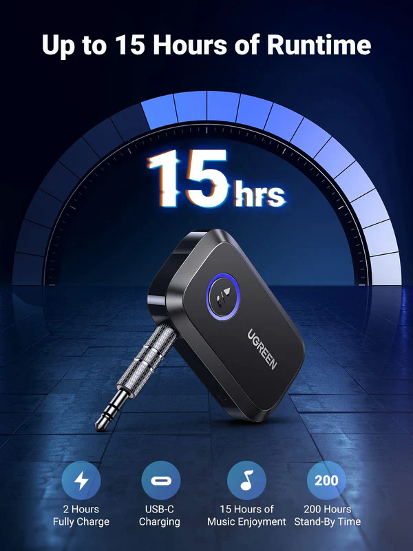 UGREEN 90748 AUX 3.5MM AUDIO TO BLUETOOTH RECEIVER V5.3 15H BATTERY LIFE